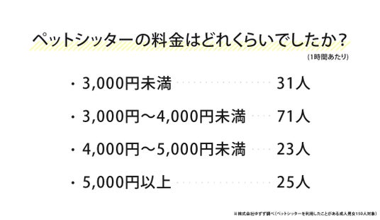 - 料金は「1時間3,000~4,000円未満」が最多(71人)