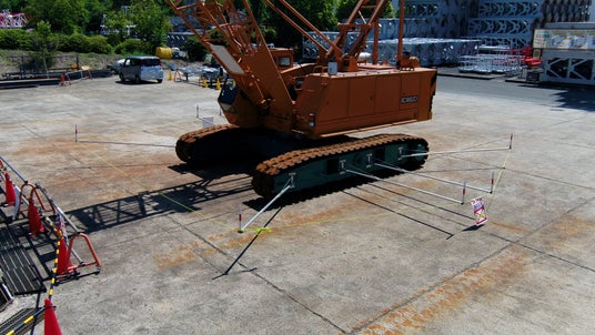 これまでクローラークレーンをはじめとするクレーン車で作業を行う際、周囲に人を近づけないように、カラーコーンや単管バリケード等を使用し、立入禁止エリアを設置していました。しかし、クレーン移動時には都度このバリケードも移動させなければならず、さらにこの移動作業をオペレーター自身が行うことが多いため、頻繁な移動によってオペレーターの作業量が増加し、作業効率が大幅に下がっていました。
