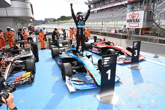 その直後、ピットに入らず3位で走行していた#15笹原右京選手がピット作業を済ませ、トップでコースに戻ることに成功。31周目に再スタートが切られると、猛追する#38坪井翔選手や#1野尻智紀選手を振り切り、#15笹原選手がスーパーフォーミュラ初優勝を飾りました。