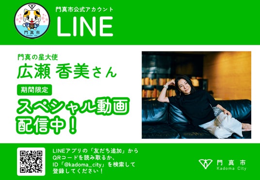 動画は門真市公式LINEを友だち追加すると自動配信されるもので、動画内では、広瀬さん自身が門真の星大使としての想いなどを語る内容となっています。
