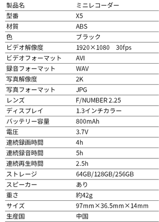 「X5」は録画・写真・録音・再生・Webカメラ・USBメモリの合計6つの機能を持ち、様々なシーンで活躍するミニサイズのポータブルレコーダーです。