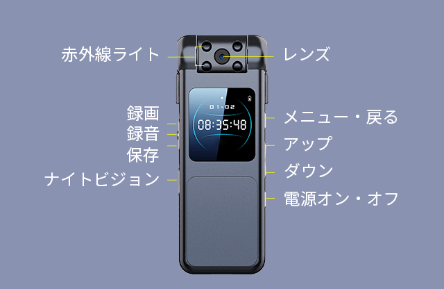 本体の左側のスライドスイッチで簡単に待機/録音/録画を切り替えることができます。スイッチを録音/録画モードにスライドすると、「X5」は自動的に録音/録画を開始します。スイッチを待機モードにすると「X5」は録音/録画した内容を自動保存して待機します。