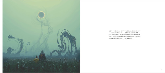 不可思議な宇宙的現象によって大気に有毒物質が満ち、人々は病に苦しみながら死んでいく。地下に建設された都市で生き延びようとする兄妹と、取り残され見殺しにされる兄弟。幼い弟は袋に何が入っているか、知っていた。スウェーデンの鬼才、シモン・ストーレンハーグがコロナ禍の世界に放つ、生存をめぐる切な過ぎる寓話、そしてイラストレーション。