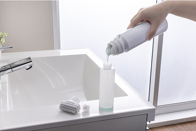 お手持ちの洗濯用洗剤をボトルに入れ、シートを押し付けると洗剤が出てくるので、手軽に予洗いができます。食べこぼし直後の汚れや赤ちゃんのスタイなど、すぐに汚れを落としたい時に便利です。