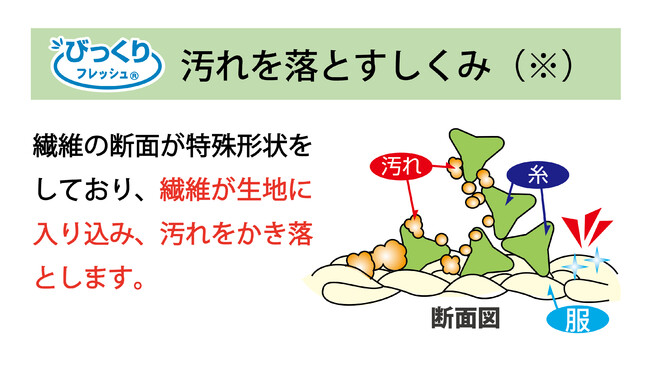 サンコー独自の特殊繊維「びっくりフレッシュ(R)」※を使用した『びっくりエリそで洗濯クリーナー』は、ボトルとクリーナーが一体になった洗濯アイテムです。