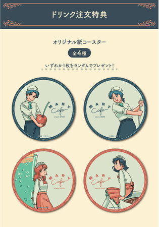 ■ドリンク注文特典:カフェでドリンクメニューをご注文された方に「オリジナル紙コースター(全4種)」を1品につき1枚ランダムでプレゼント。