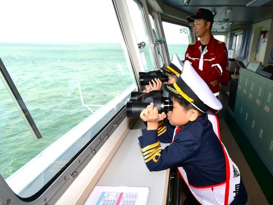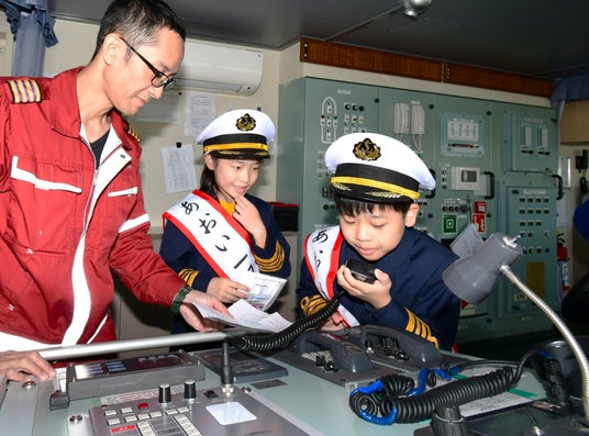 お客様のお出迎え、本物の汽笛の吹鳴、無線連絡、船内巡視など、船長の仕事に一生懸命取り組んで下さいました。