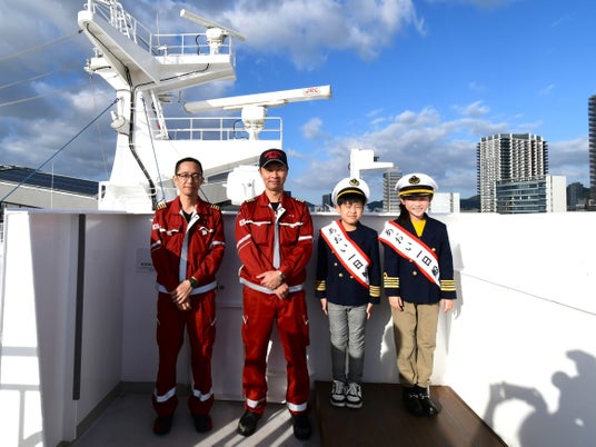 今年は前回の100件を大きく上回る450件のご応募を全国からいただき、その中から2名の小学生、宮崎栞さん(小学3年生)と西谷晃司朗さん(小学5年生)を一日船長に選任。