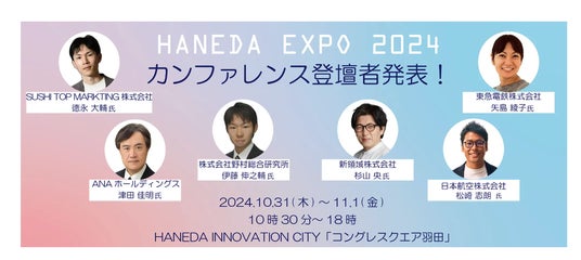 HANEDA INNOVATION CITY(R)「コングレスクエア羽田」他羽田空港施設内にて開催される「HANEDA EXPO 2024~THE GATEWAY TO THE WORLD THROUGH DIVERSE TECHNOLOGIES~ 」にブース出展及びCEO徳永の講演が決定しました。
