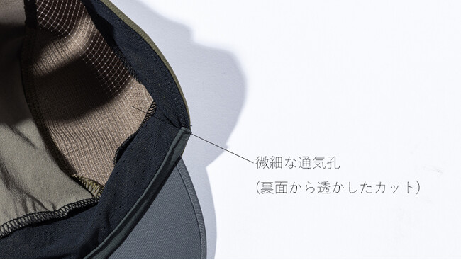 涼しさ(高通気)にもこだわりました。頭部の側面に、優れた通気性と耐久性を兼ね備えた特殊な布帛(ふはく)素材を採用。トレイルランニングなどのスピードアクティビティや、ヘルメットの中に装着するときも、蒸れにくく快適です。