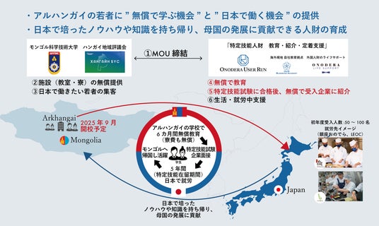 株式会社ONODERA USER RUN(代表取締役社長:加藤 順、所在地:東京都千代田区、以下「OUR」)は、2025年4月14日(月)、モンゴル国において無償教育の提供と日本国内への人財送り出しを目的として、「ハンガイ地域評議会」および「モンゴル科学技術大学(以下モンゴル科技大)」とのMOUを締結いたしました。
