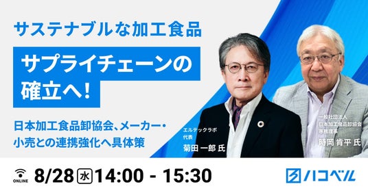 物流プラットフォーム「ハコベル」を展開するハコベル株式会社(本社:東京都中央区、代表取締役社長CEO:狭間 健志、以下:ハコベル)は2024年8月28日(水)に、一般社団法人 日本加工食品卸協会 専務理事 時岡 肯平 氏、 L-Tech Lab 菊田 一郎氏の両名をお迎えし「サステナブルな加工食品 サプライチェーンの確立へ!」をテーマとするウェビナーを開催することをお知らせいたします。