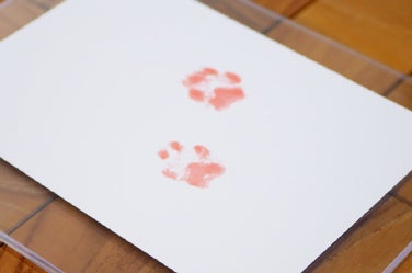 - スタンプで足あとを取る体験そのものが、愛犬とのかけがえのない大切な思い出となります。また、完成したTシャツに加え、実際に取った足あとの原版を収めた「記念パネル」をセットでご提供し、形としても思い出を残していただけます。