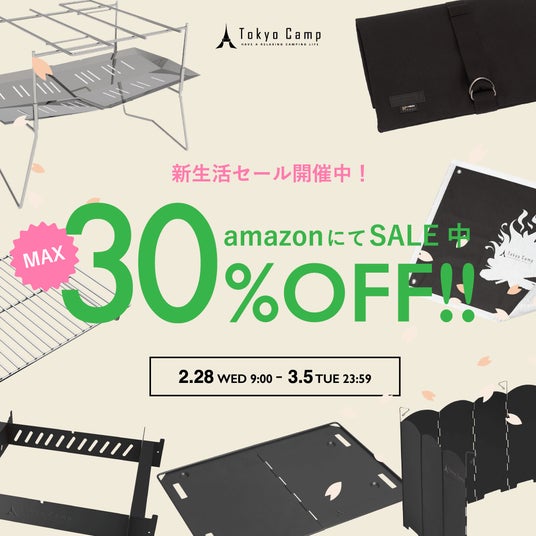 合同会社DRive(本社:大阪府箕面市、代表:吉川了)が運営するキャンプブランド『TokyoCamp(トーキョーキャンプ)』は、2024年2月28日(水)9時から3月5日(火)23時59分まで開催されるAmazonタイムセールに参加いたします。タイムセールでは、キャンパーから絶大な人気を誇る"TokyoCamp焚き火台"や"ウインドスクリーン"など、春のキャンプシーズンに向けて、今から使えるTokyoCamp用品を最大で30%OFFといち早くお得になります。