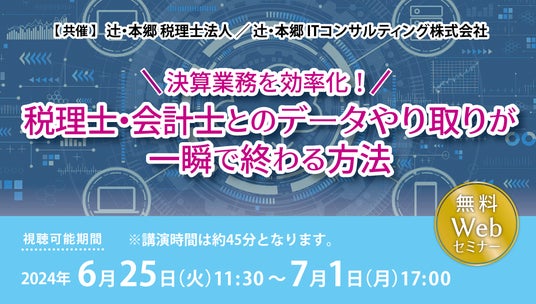 辻・本郷 税理士法人(本社:東京都新宿区、理事長:徳田孝司)は、辻・本郷 ITコンサルティング株式会社(本社:東京都渋谷区、代表取締役社長:黒仁田健)と共催で「決算業務を効率化!税理士・会計士とのデータやり取りが一瞬で終わる方法」セミナーを開催いたします。月次決算のたびに発生する税理士や会計事務所とのデータのやり取り。本セミナーでご紹介いただく「GigaCC」を利用すると、パスワードをかけたり、メールを作成したりすることなく、作成したデータを「特定のフォルダ」に入れ込むだけで、一瞬でデータの共有が可能です。また、社内はもちろん、社外側でもデータの保存先が一元管理できます。税理士や会計事務所への連携以外にも、様々なデータの授受のシーンで活用できます。