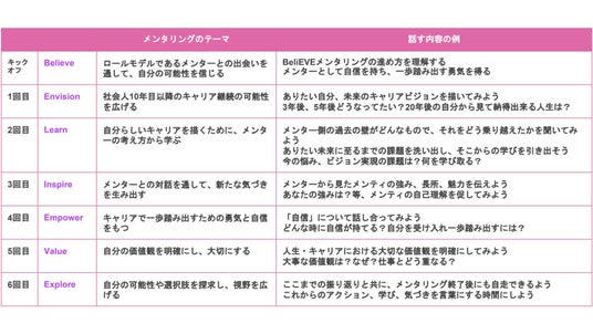 女性管理職育成に特化したメンタリングの知見を持つ株式会社Mentor Forの監修のもと、「BeliEVE Mentoring Program」を活用し、約半年間にわたるメンタリングを実施しました。
