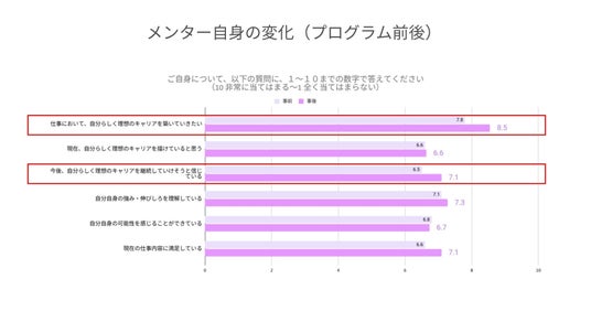 「理想のキャリアを築きたい」7.8から8.5に上昇 メンター自身の成長機会に