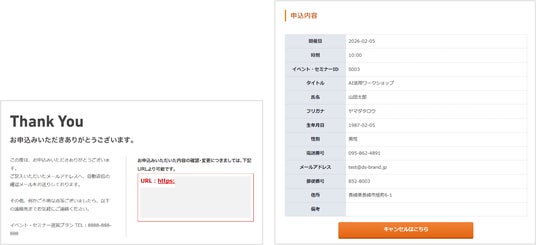 申し込まれた内容は、管理者と申込者の双方へ自動返信メールとして通知が届きます。