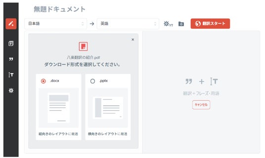 PDFファイルを翻訳処理した際に、従来のWordファイル形式(.docx)に加えて、PowerPointファイル形式(.pptx)でもダウンロードできるようになりました。