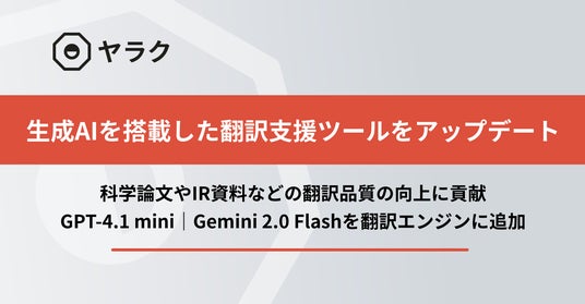【ヤラク翻訳更新情報】 新エンジン追加と生成AIエンジンの文字数上限の拡大に関するお知らせ