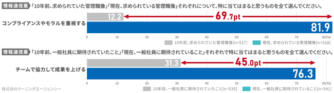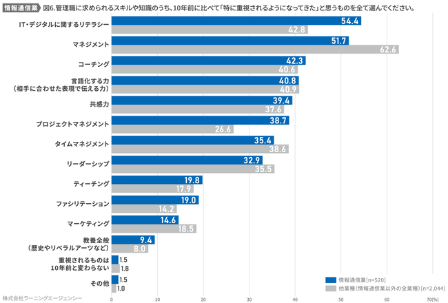 本調査結果より、情報通信業における管理職と一般社員に求められることは、この10年間で大きく変化したといえます。