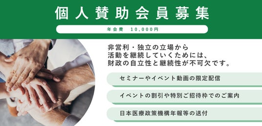日本国内はもとより、世界に向けても有効な医療政策の選択肢を提示し、地球規模の健康・医療課題を解決すべく、これからも皆様とともに活動を続けていきます。