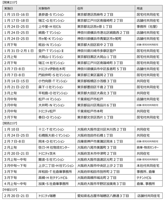 高松建設株式会社(本社:大阪府大阪市、代表取締役社長:高松孝年、以下当社)は、2025年1月から4月に竣工する関東・関西・名古屋地区の29物件を対象に、完成内覧会を各地で開催いたします。この内覧会では、当社が設計・施工を手がけた新築賃貸マンションや事業用建物等を公開いたします。