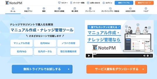 NotePM(ノートピーエム)は、マニュアルやノウハウを簡単に投稿できて、強力な検索機能でほしい情報をすぐ見つけられるサービスです。マニュアル、手順書、業務ノウハウ、社内FAQ、日報・議事録など、何度も検索するような、ストック型の情報管理に最適です。