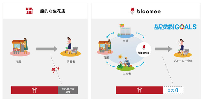 ブルーミーはサブスクリプションサービスだからこそ、事前に必要な分だけお花を仕入れることができます。全国の提携花屋、市場や生産者と協力することで、売れ残りなどのロスを減らし、日本中のサスティナブルな花消費に貢献して参ります。