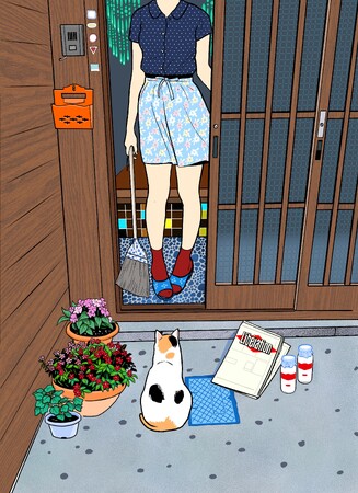 かせきさいだぁは日本を代表するヒップホップアーティストであり、あるときは漫画家、文筆家、そして現代アーティストといくつもの多彩な顔を持つ。彼の描く作品は、すっきりと無駄のない構図や透明感のある素直な色調が印象的で、まるで軽快なシティポップを聴いているような心地よさがある。