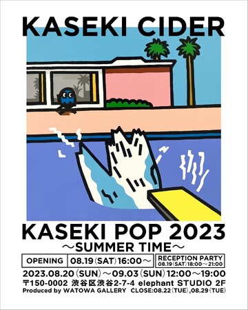 この度、WATOWA GALLERYは、所属作家かせきさいだぁによる新作個展「KASEKI POP 2023~SUMMER TIME~」及び、 “かせきさいだぁ”が影響を受けた東京のクリエイターを紹介するPOP UP展、「TOKYO POP by KASEKI CIDER」を8月20日(日)より渋谷elephant STUDIOの1Fと2Fにて、同時開催いたします。POP UP展は「ドラゴンヘッド」「ちいさこべえ」で人気の漫画家“望月ミネタロウ”さん、東京のPOPを代表するイラストレーター“白根ゆたんぽ”さんのお二人を迎え、“かせきさいだぁ”の作品も交えてのグループ展となります。