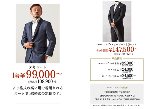 オーダー【タキシード】1着99,000円~(税込108,900円~)
