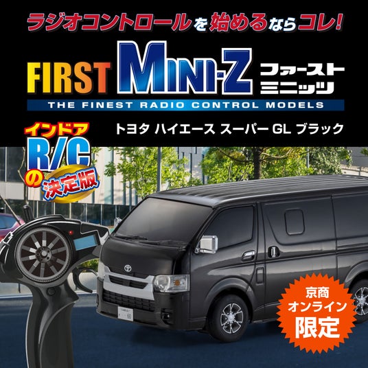 ラジオコントロールカーを始める人にうってつけのインドア・トイラジの決定版。ファーストミニッツシリーズから「トヨタ ハイエース スーパーGL(ブラック)」 を「京商オンラインショップ限定」で発売します。