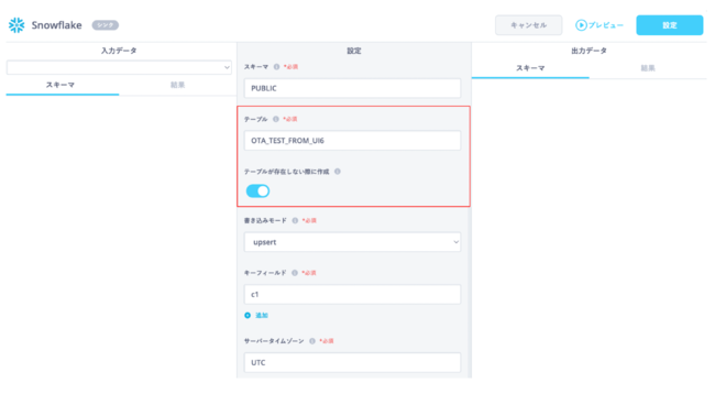 データ転送先 Snowflakeに、テーブル作成オプションを追加しました。これにより、ReckonerからSnowflakeにデータ転送する際に、テーブルがない場合でもReckoner側から自動でテーブル生成が可能になります。