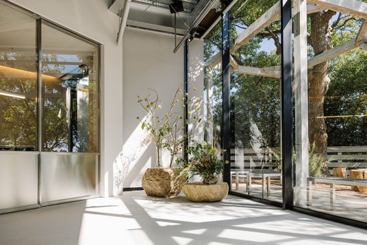 1900年代初頭にドイツで始まった合理主義・機能主義的な芸術思想であるバウハウスの理念を追求し、メタルやガラスの直線的な美しさと自然素材の有機的な要素を融合させた空間デザイン。