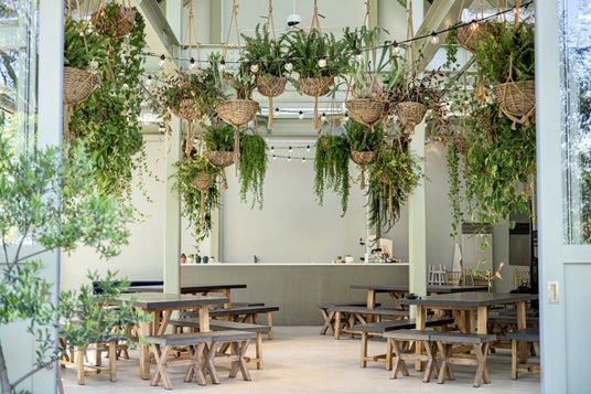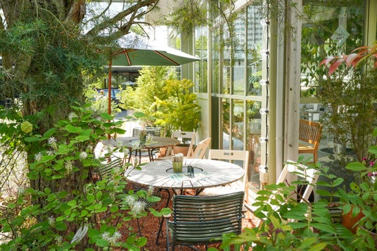 Greenに囲まれた空間でゆったりと過ごせるカフェ。SOLA KOBEのシェフが監修する本格的なカフェメニューから、香り豊かなハーブティーにこだわりのスイーツもご用意。自然豊かな室内スペースのほか、屋外ガーデンの木製ベンチやテーブルもおすすめ。