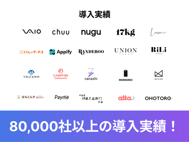 チャネルトークは「ビジネスの”持続可能な成長”をサポート」することをミッションに、その成長の原動力である「顧客」とビジネスをつなぐ「熱狂的ファンを作る接客チャット」です。現在、ECを中心に80,000サイトに導入されています。従来の受動的に顧客の問題を解決するカスタマーサポートにとどまらず、より積極的に顧客体験向上や接客、顧客管理(CRM)、ブランディング、ファン作りを行うカスタマーサクセスとしても活用できます。