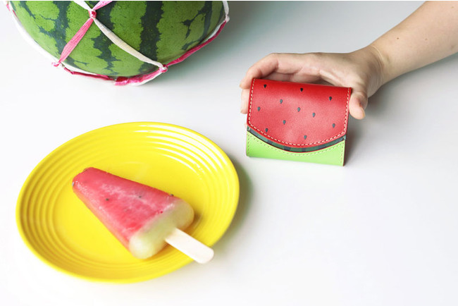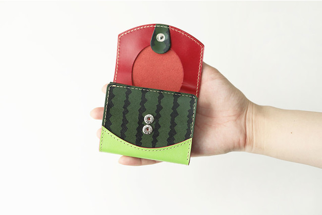 スイカとスイカバーが好きすぎるスタッフ”のん”がデザインした小さいふ「スイカ」。