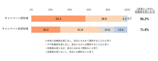 「気候変動に危機感を感じる」キャンペーン認知者95.2%、非認知者71.8%で20pt以上の差 危機感の醸成に加え、行動促進につながる情報発信が求められる
