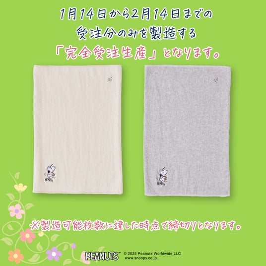 「体感温度を2度上げる」がコンセプトのゲンナイ製薬のブランド【プラスニド:千代田区、代表:上山永生】は【限定受注生産の四季のはらまき PEANUTS~はる~】 の受注を2月14日まで受け付けています。