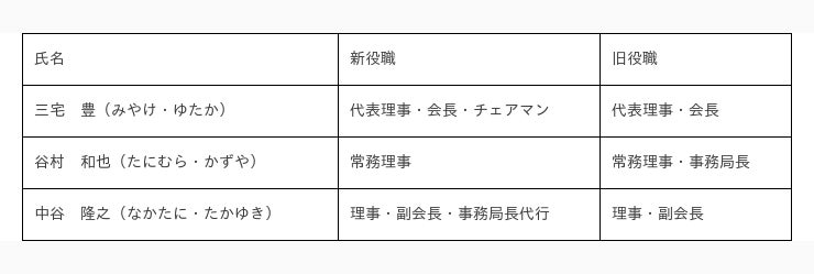 2024年1月1日より、三宅豊代表理事兼会長がチェアマンに就任し、中谷隆之副会長が事務局長代行を務めます。