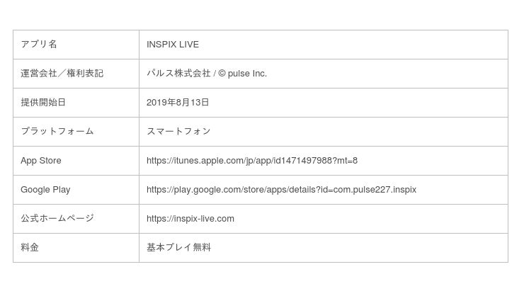 なお、「INSPIX LIVE」は、現在パルスとモノビット・モリカトロンホールディングス株式会社により共同で大型のプロダクトアップデートを行っており、「INSPIX LIVE」をインストール済みであれば、本アップデート後に「INSPIX WORLD」に切り替わる仕様を検討していますが、開発の過程で仕様が変更になる可能性もございます。