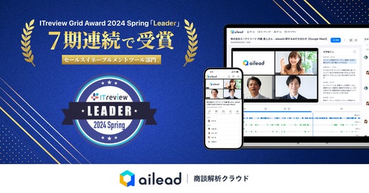 株式会社バベル(本社:港区、代表:杉山)が提供する商談解析クラウド aileadはITreview Grid Award 2024 Springにて、ユーザー高満足度の称号 Leaderを受賞しました