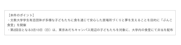 学生たちは、区内で子ども食堂を運営する団体から助言をもらい、真に支援を届けたい子が来づらくならないよう、すべての子どもたちを受け入れるように呼びかけています。また、コロナ禍で思い通りの活動ができない中、いずれは「ぶんこ食堂」で子どもたちに勉強を教える機会も作りたいとの思いのもと、運営方法を模索しています。