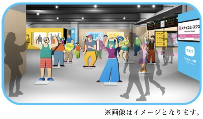 本物さながらにデザインされた券売機でチケットを購入し改札を通るとそこには、“てきと~”を満喫できる約1,000m²もの敷地内が広がっています。来場者は、全長約42.5mにもなる「てきと~線」というぐにゃぐにゃの車両に乗り、「てきと~中央駅」、「エキベン・タウン駅」、「メチャコミ・スクエア駅」、「てつど~ぶつパーク駅」、「ゲーム・ステーション駅」などの各ポイントで下車しながら、様々な体験コンテンツを楽しんで頂けます。