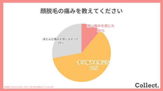 約6割の方は「多少痛みを感じた(61%)」。顔は皮膚が薄く刺激を感じやすいので、部位や脱毛機の種類によっては痛みを感じるようです。