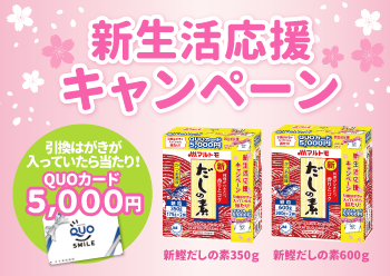 〈新鰹だしの素 新生活応援!QUOカード5,000円が100名様に当たるキャンペーン〉
