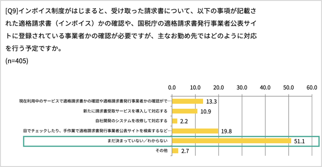 【5】受取側としてインボイスを受け取った後の確認は、半数以上の51.1%がまだ方針未決定