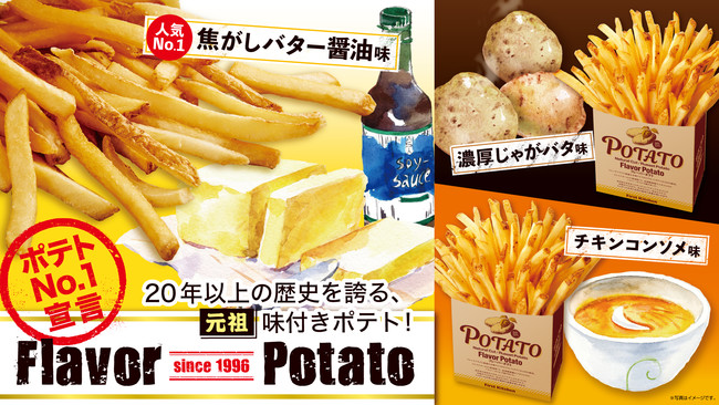 ファーストキッチンではこれまでに、さまざまなフレーバーポテトを展開して参りました。 その数、なんと133種類!現在でもレギュラーメニューに君臨している 「じゃがバタポテト」は25年もの間、愛され続けています。