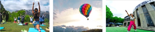 音楽ライブを始めとしたステージでのパフォーマンス以外にも、絶景や新鮮な空気をより全身に取り込み、楽しんでいただけるコンテンツを期間中多数ご用意いたします。「絶景手ぶらリラックスヨガ」は白馬村の街並みや北アルプスを一望できる開放的な展望エリア「白馬ヒトトキノモリ」で実施し、手ぶらでご参加いただけます。雪解けが進む北アルプスや夕暮れの白馬の街並みを一望できる熱気球体験「絶景ハクバルーン」は、国内でも珍しい標高1,200mから気球で上がり、夕焼けに染まりゆく景色を空に近い場所からお楽しみいただけます。「絶景フィットネス」は昨年約200人が参加した人気アクティビティ。気軽に参加していただけるよう、YOGAとZUMBAの2種類のエクササイズをご用意いたします。